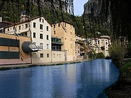 ![]() Pont en Royans, à l'architecture médiévale est célèbre pour ses maisons colorées et collées de guingois aux rochers, avec leurs balcons suspendus dans le vide. Le Musée de l'Eau réalisation audacieuse et visionnaire, outil pédagogique novateur.