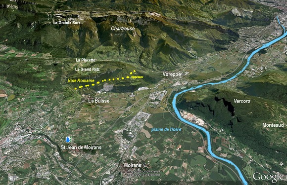![]() 218 avant Jésus-Christ, Hannibal jeune général carthaginois âgé tout juste de 29 ans, fidèle au serment fait à son père Hamilcar, s’élance à l’assaut de Rome, son ennemi juré et celui de sa cité Carthage, Il prend la décision presque insensée de conduire des troupes considérables d’Espagne en Italie en passant par les Pyrénées et les Alpes ! ![]() Des centaines d'ouvrages ont cherché à élucider "par où" étaient passés les éléphants d'Hannibal pour traverser les Alpes et aller guerroyer contre les romains. Afrique du Nord, Hispanie, sud de la Gaule.. le Rhône, l'Isère, Moirans... et après ? Des quelques variantes pour franchir les Alpes et éviter les marais de la cluse de Voreppe, une prend de la crédibilité depuis des observations récentes concordant avec les détails des écrits historiques de Polybe et Tite-Live. Pour Geoffroy de Galbert le passage clé c’est bien le verrou de Voreppe, décor de sa jeunesse. Là où Hannibal essuya sa première attaque des Allobroges. Polybe en main il compare : “Il y a bien un oppidum pré-romain, un chemin étroit bordé de précipices, proche de l’Isère.” Un passage obligé et difficile..... ![]() Élémentaire, non ?. "Hannibal en Gaule" devient une référence. . Il nous reste à imaginer 38 000 fantassins, 8 000 cavaliers et 37 éléphants de guerre transitant par St Jean de Moirans, pour s'engager à flanc de colline, et affronter les terribles Allobroges au dessus de La Buisse.