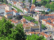 ![]() Depuis son belvédère une table d'orientation met un nom sur les sommets alentour. La vue s'étend sur la Chartreuse, le Vercors et l'avant pays alpin Dauphinois. Par la cluse de Voreppe on aperçoit les grands massifs, Belledonne et Oisans, à l'ouest la plaine de Bièvre, le Vivarais et le Mont Pilat. ![]() ![]() au delà de la trouée verte de la Morge, le balcon de St Jean. ![]() en bas la ville un jour de marché, des ensembles emblématiques... l'église St Bruno La Brunerie La Visitation.