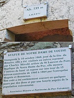 ![]() La statue ND de Vouise La statue haute de 7 mètres est dressée sur une imposante colonne de 15 mètres, remerciement de la population pour l'arrêt de l'épidémie de peste de 1628-1631.