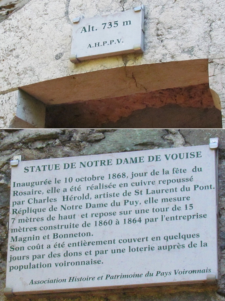 La Vouise ! La colline de Vouise. ![]() ![]() Elle domine Voiron au nord, transition entre les Préalpes et le Bas Dauphiné. Arrivé au sommet, 735m, il reste à gravir encore les 90 marches de la tour ! ![]() ![]() ![]() Depuis son belvédère une table d'orientation met un nom sur les sommets alentour. La vue s'étend sur la Chartreuse, le Vercors et l'avant pays alpin Dauphinois. Par la cluse de Voreppe on aperçoit les grands massifs, Belledonne et Oisans, à l'ouest la plaine de Bièvre, le Vivarais et le Mont Pilat. ![]() ![]() ![]() au delà de la trouée verte de la Morge, le balcon de St Jean. ![]() en bas la ville un jour de marché, des ensembles emblématiques... l'église St Bruno La Brunerie La Visitation. ![]() ![]() ![]() ![]() La statue ND de Vouise La statue haute de 7 mètres est dressée sur une imposante colonne de 15 mètres, remerciement de la population pour l'arrêt de l'épidémie de peste de 1628-1631. ![]() ![]() ![]() Elle a été financée par une souscription lancée par les Voironnais en 1864. " La loterie du 30 mai 1867 permet de financer en partie le projet et, grâce à la générosité des commerçants, 440lots sont réunis. L’empereur Napoléon 3 offre lui même un lot d'une valeur de 2000F. 20 000billets sont vendus et rapportent 10 000Fr" ![]() La statue est une copie aux dimensions réduites de celle de Notre Dame du Puy. Elle a été exécutée en cuivre rouge par un chaudronnier de Saint Laurent-du-Pont . Elle fut exposée sur la place du Marché, bénie devant l'église St Bruno alors en construction, puis transportée en pièces détachées à l'aide de brancards portés par de jeunes volontaires, et un char à bœufs pour le piédestal. La vierge couronnée d'étoiles est debout sur un demi-globe terrestre. Elle y écrase un serpent, et tient sur son bras droit l'Enfant Jésus qui bénit la ville. ![]() ![]() ![]() ![]() ![]() La montée de la Vierge fut une grande fête pèlerinage pour toute la région. Un cortège fut organisé le premier pour monter la statue en haut de la Vouise. Les pièces les plus lourdes furent chargées sur des chars. 15 brancards fleuris portés par les jeunes de Voiron montèrent différentes pièces. Le cortège mit trois heures à arriver au sommet de la montagne. ![]() ![]() ![]() ND.de Vouise est désormais l'emblème, le phare de Voiron. Si elle est désormais plus accessible, il faut encore la mériter! Monter en Vouise n'est pas de tout repos ! Plusieurs sentiers balisés permettent d'atteindre le sommet. ![]() ![]() ![]() Une fois arrivé au sommet, ![]() ![]() ![]() il reste à gravir encore les 90 marches de la tour, pour atteindre la récompense ! ![]() ![]() ![]() ![]() ![]() ![]() ![]() 2018, la statue fêtait ses 150 ans ! La Ville de Voiron a décidé de la restaurer en lui faisant subir un bon nettoyage. Elle est nettoyée pour retrouver sa couleur cuivrée d'antan. Marie Baton l'ermite de Vouise. ![]() Au pied du promontoire une avancée de rochers truffés de cavités. Début 1900 une figure hors du commun investi une grotte. ![]() ![]() ![]() Marie Victorine Rochas dite la Marie Bâton y avait acheté un terrain à crédit sur vingt ans... A la mort de son époux, vers 1902, elle aménage une cavité. Un abri de fortune simple cabanon édifié avec quelques amis voironnais pour s'isoler un peu de l'humidité de sa grotte. À l'intérieur le lit, simple couche de vieux sacs de toile et de couvertures usées. Elle passe ici ses mois d'été et le reste de l'année à l'hôpital. Les amis de la ville montent les provisions. Elle offre du café aux passants, vend ses cartes postales. et l'ermitage "Marie Baton" entre dans la légende ! ![]() ![]() ![]() ![]() ![]() ![]() ![]() |
