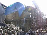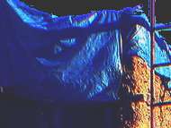 22 octobre...tempète.. la bâche s'envole, l'eau atteint les fondements.... |
