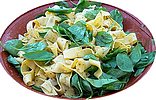 ![]() pour 6 personnes: - 2 kg de feuilles d'oseille débarrassées de leurs côtes, lavées et essorées. - 250g de mie de pain imbibée dans du lait - 4 gros oeufs extra frais - 1 gros bouquet de ciboulette - 1 gros bouquet de persil - 2 petites gousses d'ail émincées - gros sel - poivre au moulin - 20cl de crème ou de beurre • dans une cocotte, faites réduire les feuilles d'oseille, jusqu'a la purée. • dans un bol, écraser bien la mie imbibée de lait, à la fourchette, puis incorporer les oeufs, un à un, en mélangeant bien. • ajouter l'ail, les bouquets émincés, 5 pincées de gros sel, • poivrer de trois tours de moulin. • verser cela farce sur l'oseille dans la cocotte. • bien mélanger le tout. • ajouter la crème ou le beurre, pour plus d'onctuosité et de douceur. • cuire à feu doux 15 à 20 minutes en tournant sans arrêt, pour ne pas que cela "prenne" au fond. ![]() pour 4 personnes : - 8 oeufs frais, - feuilles d'oseille hachées en fines lamelles, - 20 g de beurre, sel, poivre. • laver les feuilles d'oseille, couper les queues et hacher en fines lamelles. • dans un récipient casser les oeufs et verser les feuilles d'oseille, saler, poivrer. • battre les oeufs et l'oseille. • dans une poêle, faire fondre le beurre et verser la préparation. • laisser cuire à feu moyen 8-10 min. • enrouler ou retourner l'omelette. • servir aussitôt. |