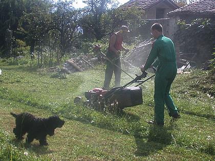 vie du gîte oh gazon ! septembre 2007 depuis 2 mois après un plongeon dans la mare pour... une photo d'achillée, rupture du... tendon d'Achille, et . une équipe de CAT* est venue me donner un coup de pouce... images !