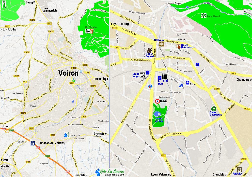 à 4km du gîte, Voiron en Pays Voironnais. Une des trois villes portes du parc naturel régional de Chartreuse. | |||