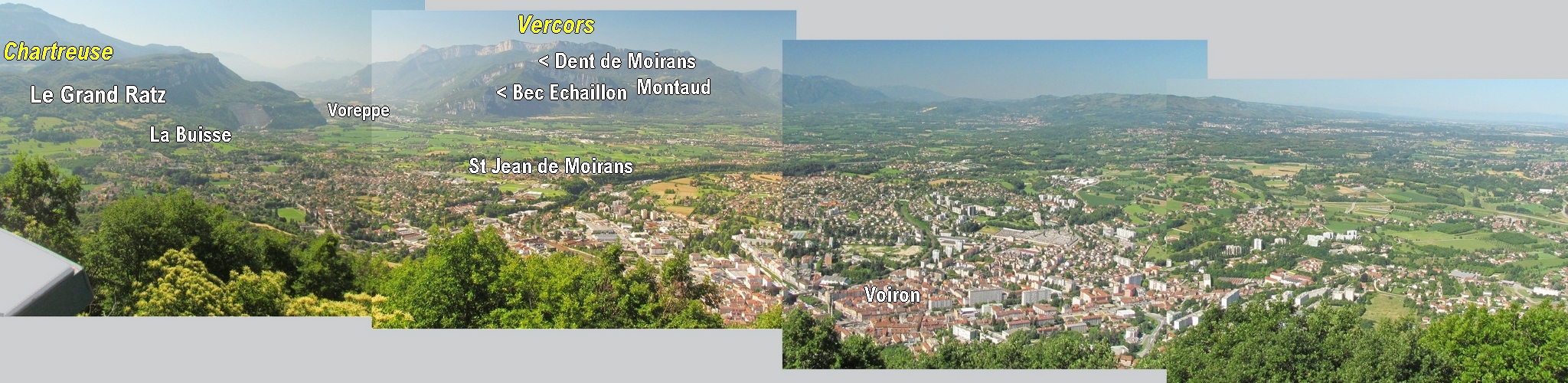 Notre Dame de Vouise. Au sommet emblématique de Voiron elle veille sur ses habitants, et embrasse un large horizon entre Chartreuse et Vercors. Surplombe Voiron à 737 mètres d'altitude. Depuis son belvédère une table d'orientation met un nom sur les sommets alentour. ![]() La statue haute de 7 mètres est dressée sur une imposante colonne de 15 mètres. Remerciement de la population pour l'arrêt de l'épidémie de peste de 1628-1631 elle a été financée par une souscription lancée par les Voironnais en 1864. Copie aux dimensions réduites de celle de Notre Dame du Puy, elle a été exécutée en cuivre rouge par un chaudronnier de St Laurent-du-Pont . Elle fut exposée sur la place du Marché puis transportée en pièces détachées à l'aide de brancards portés par de jeunes volontaires, et un char à bœufs pour le piédestal. La montée de la Vierge en juillet 1886 fut une grande fête pèlerinage pour toute la région. ![]() ![]() ![]() Plusieurs sentiers balisés permettent d'atteindre le sommet. ![]() ![]() ![]() Une fois arrivé au sommet, il reste à gravir encore les 90 marches de la tour ! ![]() ![]() ![]() La vue s'étend sur l'avant pays alpin Dauphinois, le Vercors et la Chartreuse. Par la cluse de Voreppe on aperçoit les grands massifs, Belledonne et Oisans, à l'ouest la plaine de Bièvre, le Vivarais et le Mont Pilat. ![]() ![]() ![]() ![]() et les bruissements de Voiron. ![]() ![]() ![]() ![]() |